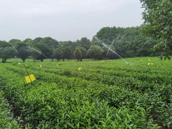 持續高溫干旱天氣使部分茶園遭受旱熱害,為減輕高溫干旱對茶葉生產的不利影響,故修建了一套茶園噴灌系統,減少干旱帶來的損失,使茶園能順利度過高溫干旱期。